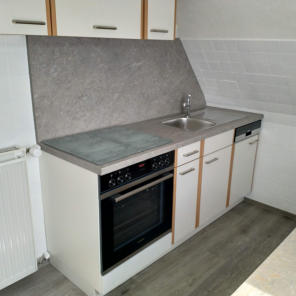 4-Platten-Ceran-Kochfeld mit BackofenKombi-MikrowelleSpülmaschineKühlschrank mit GefrierfachKaffeemaschine (Filter)ToasterWasserkocherEierkocherBügeleisen