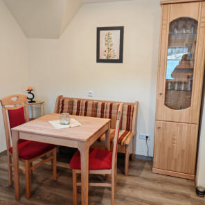Tageslicht-BadDusche/WCHaarfönKosmetikspiegelFlüssigseifeSchlafzimmerEs stehen Ihnen - ein großes Schlafzimmer (renov. 03/2023) wahlweise mit einem Doppelbett oder zwei Einzelbetten (jeweils 100 cm x 200 cm) und - ein kleines Schlafzimmer (renov. 01/2025) mit einem Einzelbett (90 cm x 100 cm) zur Verfügung.Alle Betten mit offenem Fußteil.Beide Schlafräume haben sep. Waschbecken.DachterrasseDas High-Light unserer Wohnung ist die ca. 20 qm große Dachterrasse.Sie ist teilweise überdacht, kann also auch bei Regen genutzt werden.Die Terrasse ist voll möbliert (Gartenmöbel) und bietet Ihnen einen herrlichen Ausblick. Der ideale Platz zum Entspannen.
